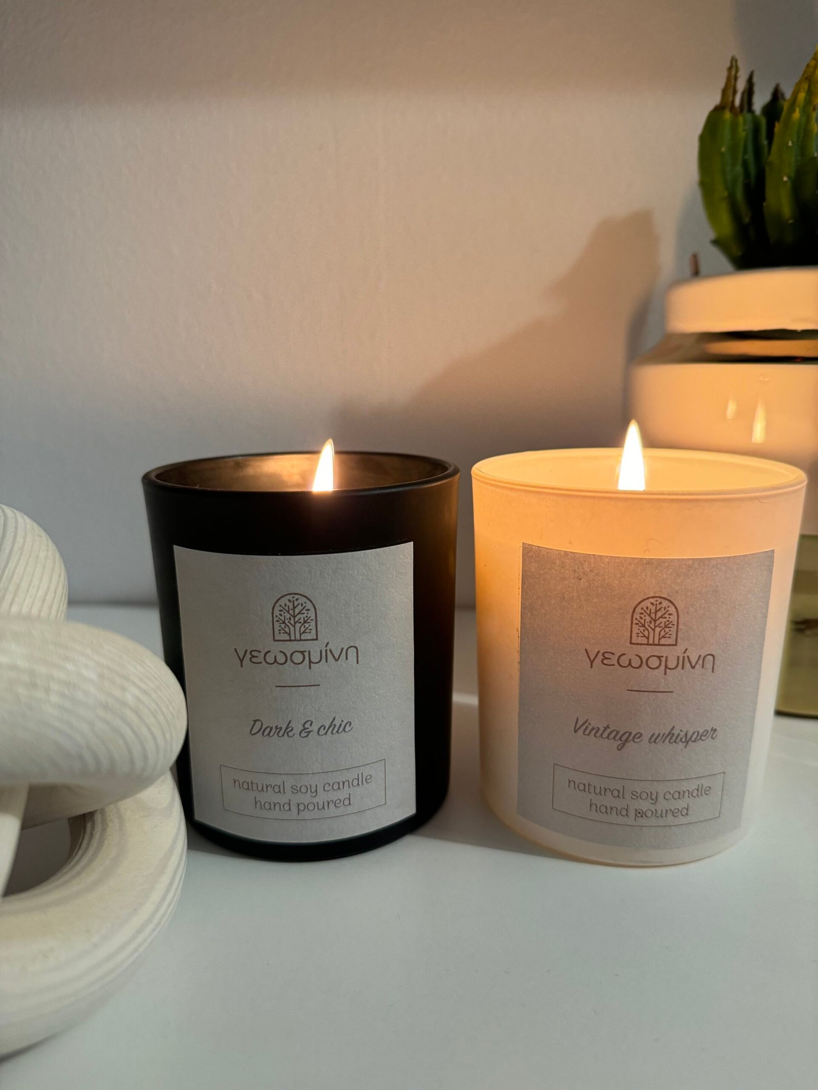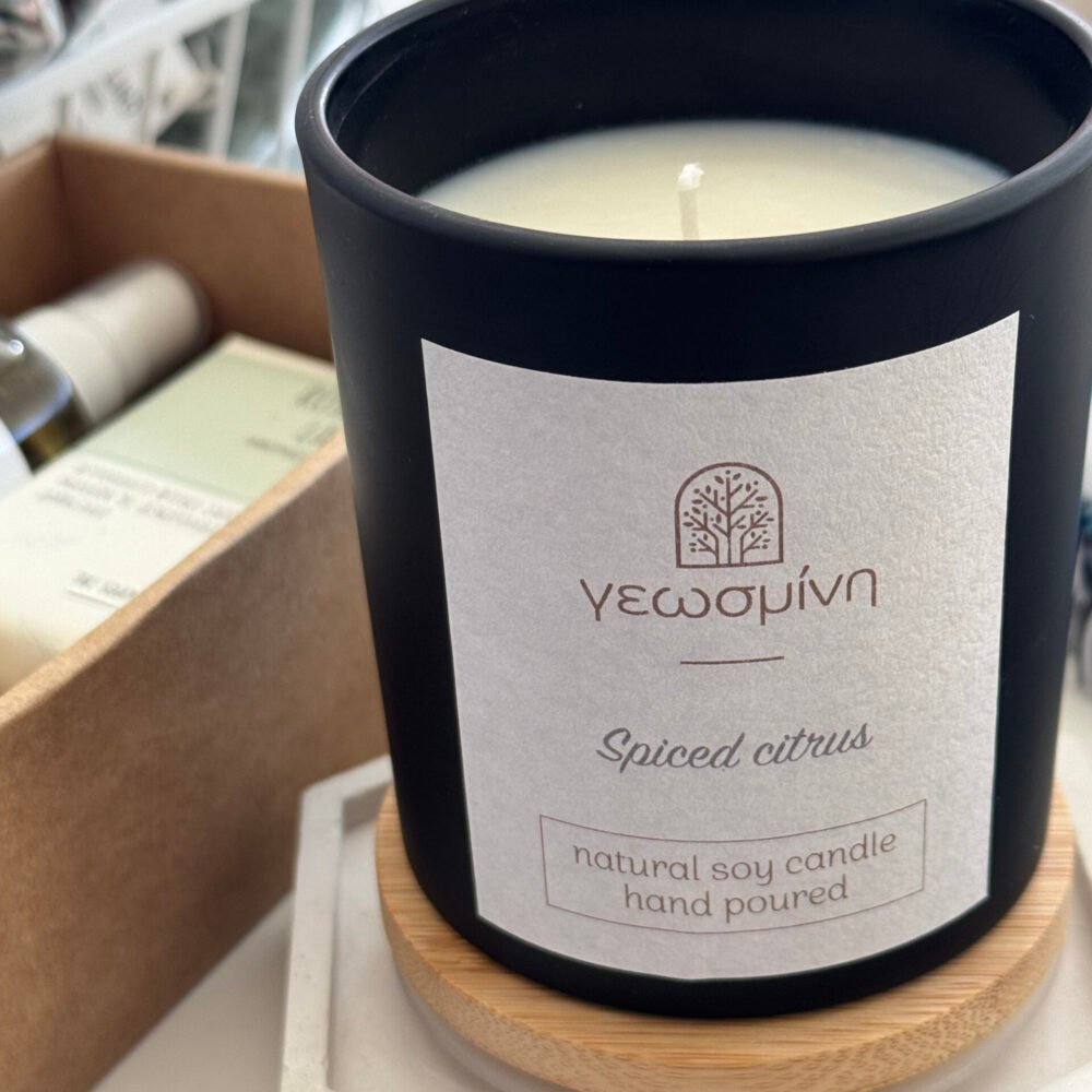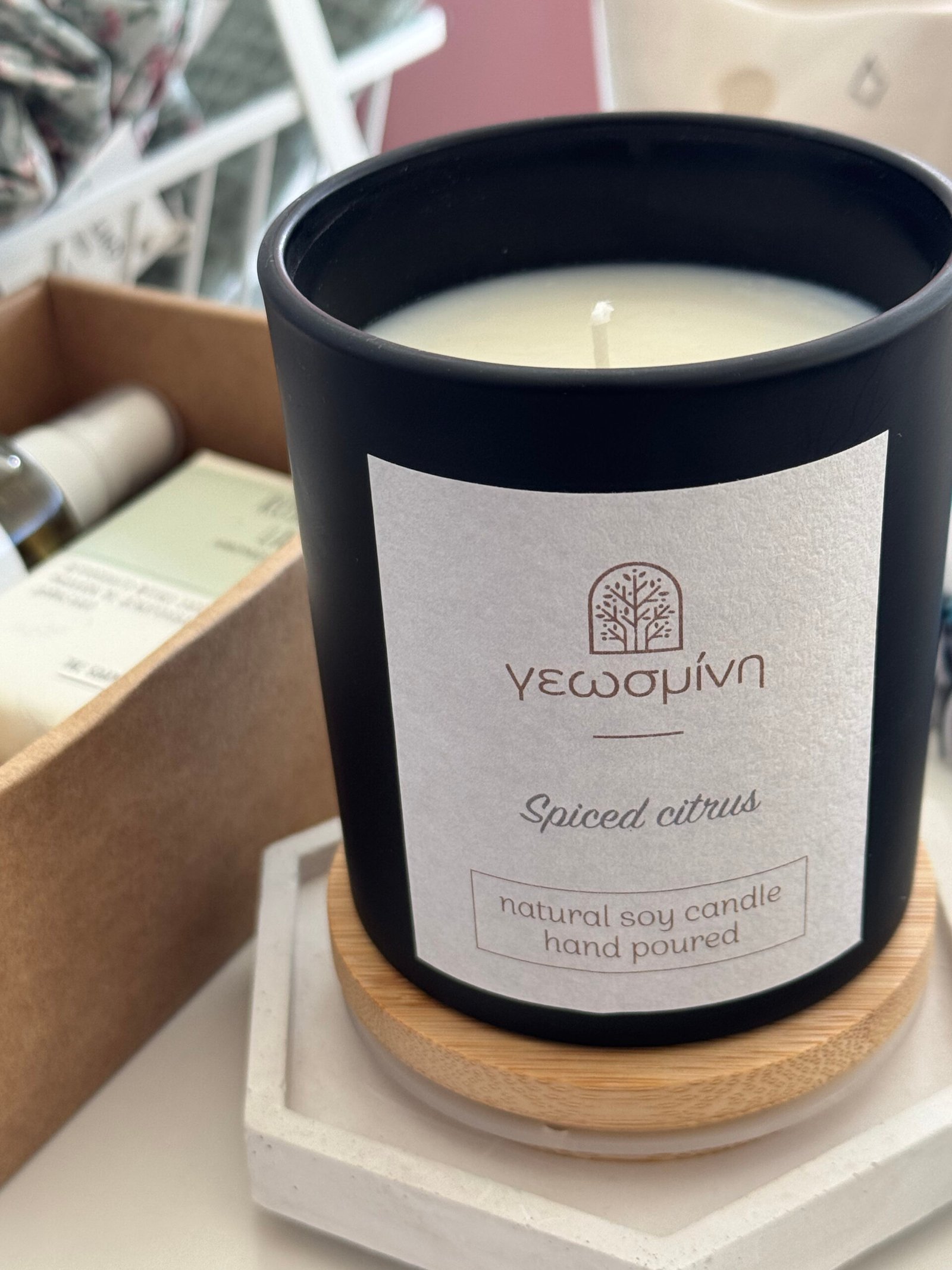 Αρωματικό κερί σόγιας σε μαύρο δοχείο, με ξύλινο καπάκι που προστατεύει το κερί σας από τη σκόνη, διατηρεί για περισσότερο καιρό το άρωμα του κεριού σας αλλά χρησιμοποιείται και ως βάση για το δοχείο. Επιλέξτε οποιοδήποτε από τα διαθέσιμα αρώματα μας και δημιουργήστε μοναδική ατμόσφαιρα στο χώρο σας