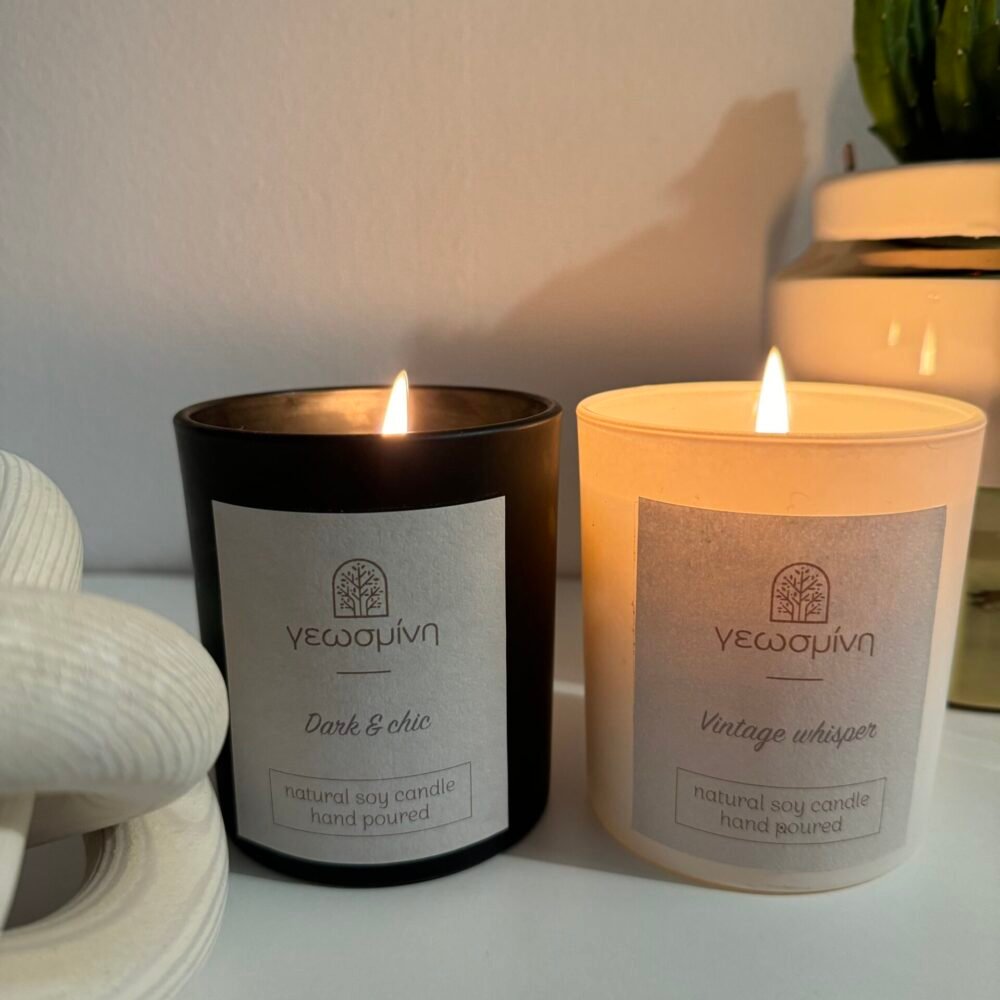 Γυάλινο δοχείο χωρητικότητας 220γρ. καθαρού κεριού.