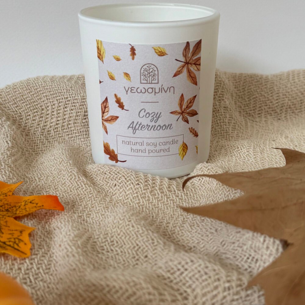 Αρωματικό κερί σόγιας σε λευκό ή μαύρο δοχείο, με ξύλινο καπάκι που προστατεύει το κερί σας από τη σκόνη, διατηρεί για περισσότερο καιρό το άρωμα του κεριού σας αλλά χρησιμοποιείται και ως βάση για το δοχείο. Το επετειακό μας άρωμα cozy afternoon με νότες από ψητά μήλα, βανίλια, καβουρδισμένους ξηρούς καρπούς και σπόρους τόνκα, θα προσφέρει στο χώρο σου μία υπέροχη ζεστή μοσχοβολιστή ατμόσφαιρα.